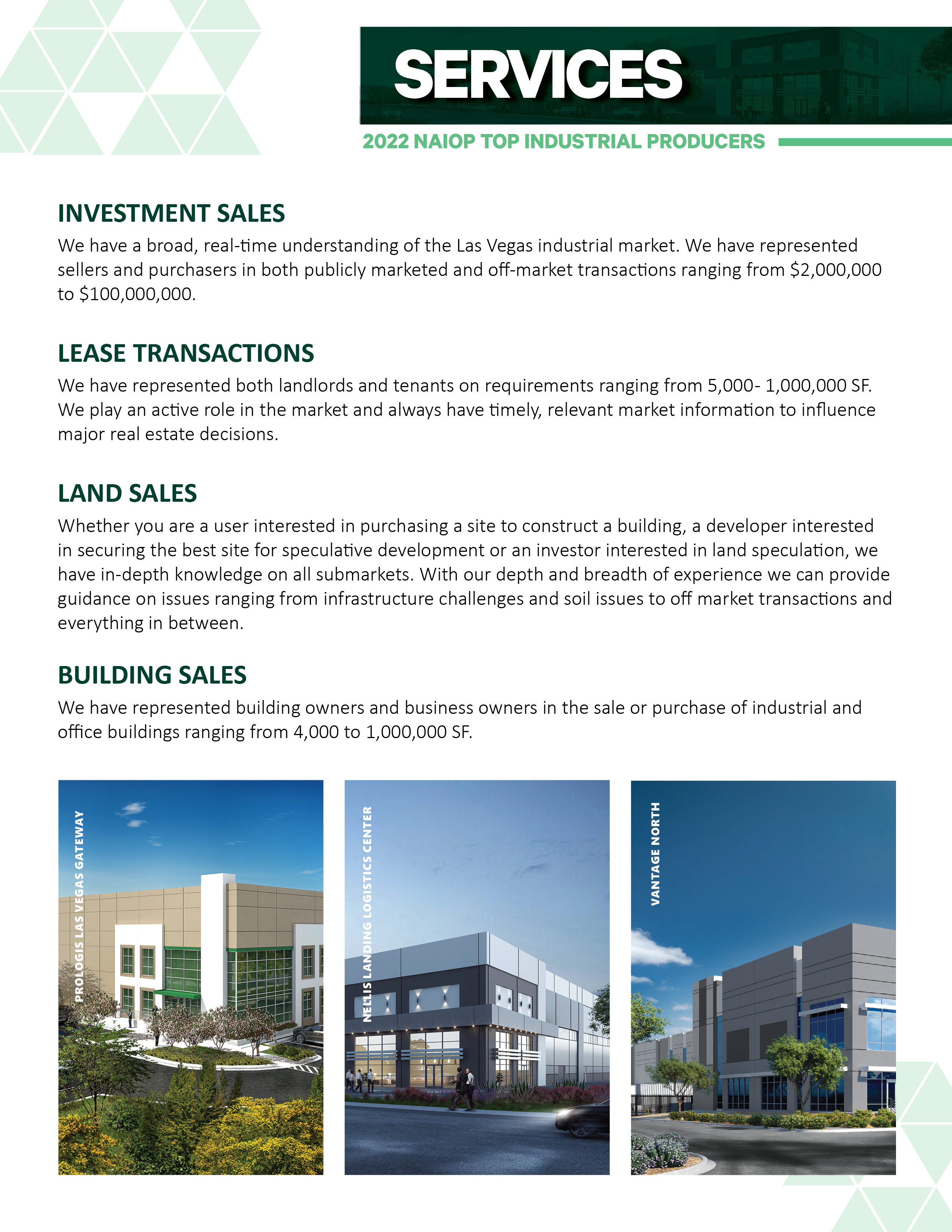 A team resume for the Higgins-Toft-Zaher industrial team at CBRE. The goal was to create a simple but modern brochure to showcase the teams experience, services, and sold/leased buildings.