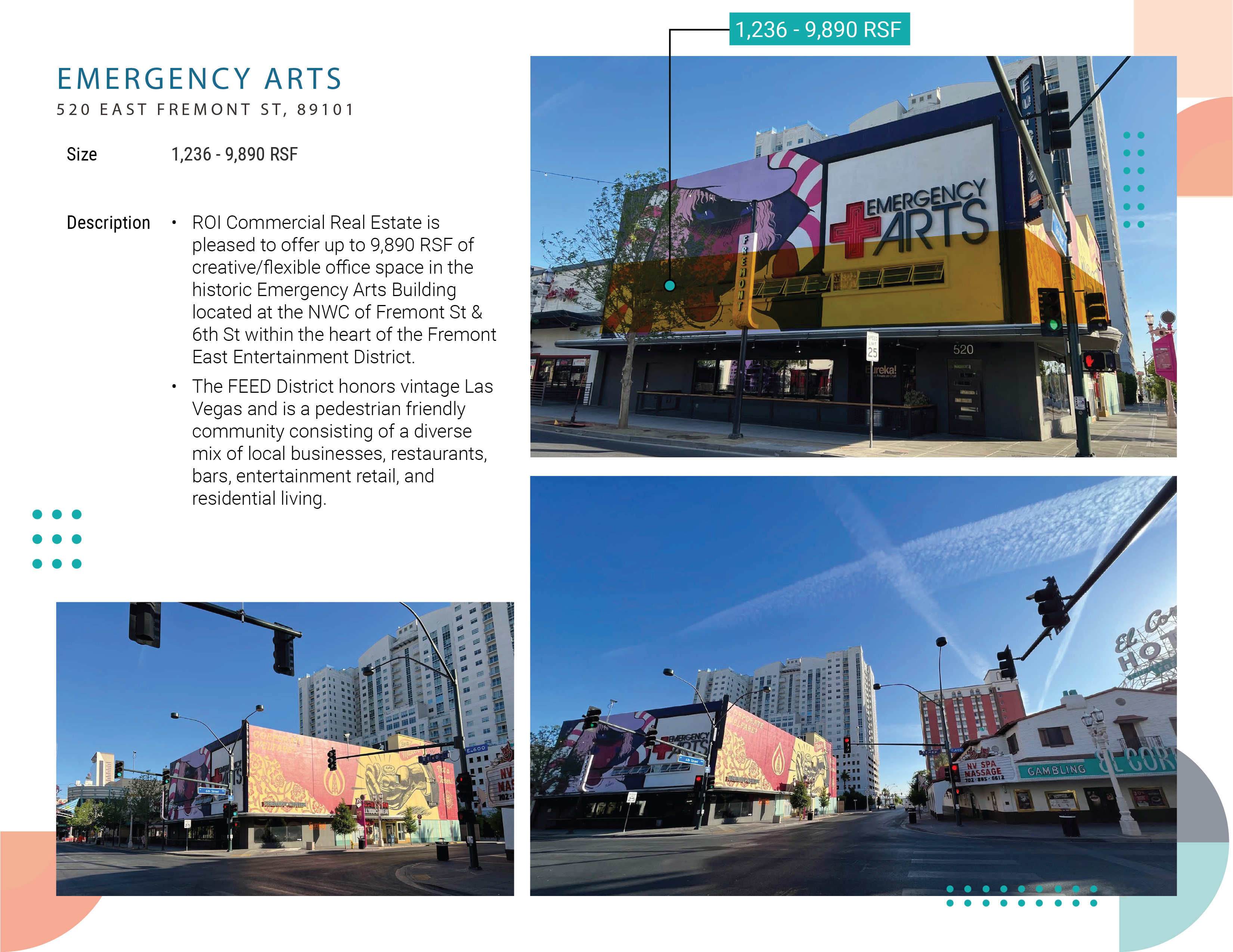 An online brochure created for ROI Commercial Real Estate. This was used to promote the Emergency Arts building on Fremont Street as the second story is available to rent for businesses.