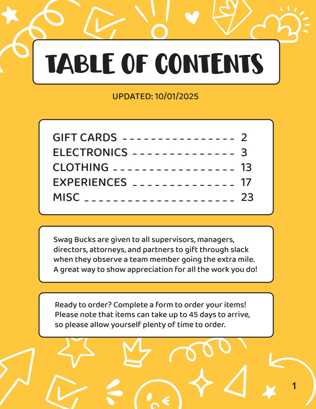 An internal catalog created for Bighorn Law’s rewards program. Design elements were hand drawn and imported to Illustrator and turned into vector files. The entire catalog was designed and edited by me in InDesign.